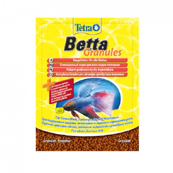Tetra Betta Granules - корм для петушков (гранулы). Tetra Betta Granules Тетра Бетта Гранулы – это питательный сбалансированный корм для петушков. Чрезвычайно аппетитные плавающие гранулы с натуральными усилителями цвета придадут вашим рыбкам красивую окраску. Корм обогащен витаминами и питательными веществами для укрепления иммунной системы. Не мутит воду.